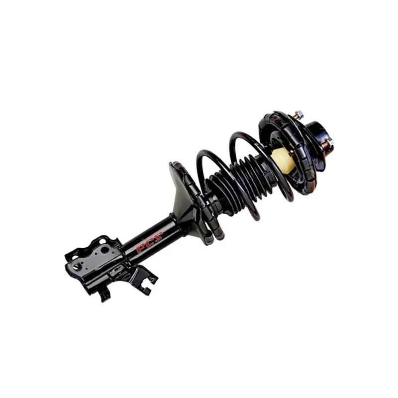 Struts combine the shock absorber and spring support into one unit. Worn struts cause clunking, poor handling, and accelerated tire wear.